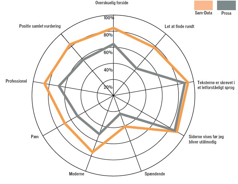 Dobbelt så mange finder det let at finde rundt på samdata.dk som på prosa.dk. Derudover finder langt flere de rette svar på vores konkrete spørgsmål, og de har også haft lettere ved det.