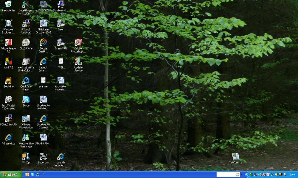 "Jeg skifter jævnligt mit skrivebordsbillede ud og plejer at vælge billeder, jeg selv har taget. De skal passe i komposition til ikonerne på skærmen. Billedet her er taget i Geels Skov i Søllerød."