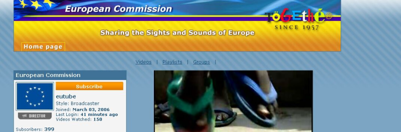 EU-kanalen på YouTube hedder EUtube og har overskriften: ”At dele synet og lyden af Europa.”