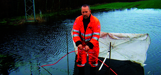 "Mange gange regner det så meget, at grundvandet faktisk stiger helt op i hullet. Det kniber somme tider for os at få gjort kablet fri af vandet," fortæller René Skjøde Andersen.