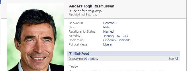 "Det er Anders Fogh blandt andre et eksempel på. Jeg har været Facebook-ven med Anders Fogh Rasmussen siden valget blev udskrevet, men hans status har hele tiden været 'Anders is ude at føre valgkamp'. Det afspejler meget godt den fraværende tilstedeværelse."