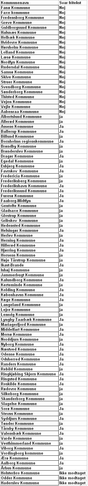 Her er listen over kommunernes reaktioner på en almindelig e-mail.