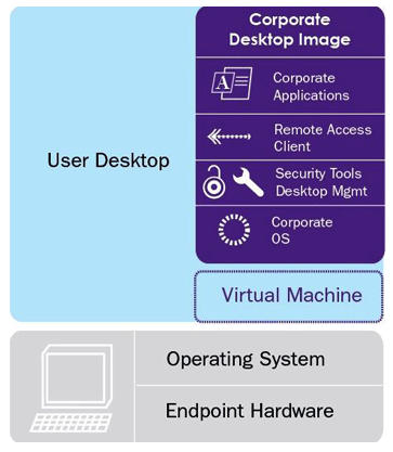 Desktop virtualisering indkapsler alt på en desktop - operativsystem, applikationer, værktøjer og data - i en virtuel maskine, der så kan installeres og afvikles på en given computer.