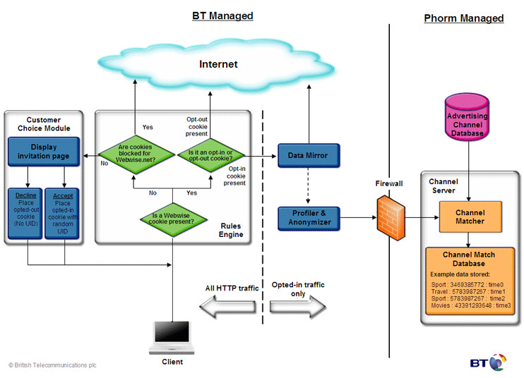 BT og Phorm har flere gange understreget, at oplysningerne bliver anonymiseret, så de mener ikke, der er retslige, moralske eller etiske problemer ved systemet.