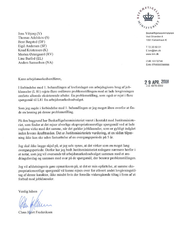 Se brevet herunder.