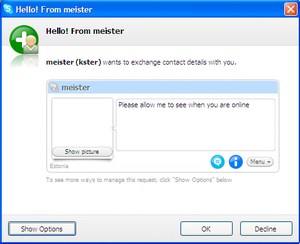 Brugeren, som skal godkende den nye Skype-kontakt, kan dog stadig vælge at se billedet af personen ved et enkelt klik.