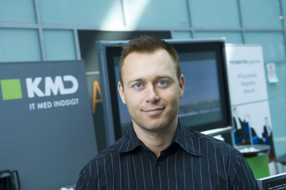 På KMD's stand fortæller Morten Overgaard, der kommer fra KMD's employer branding afdeling, at det ikke er alle der ved, hvad et job hos KMD indebærer.