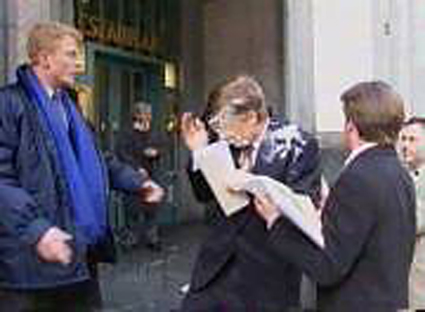 Han blev cremet til på vej ind i Concert Noble Hall, hvor han skulle deltage i en uddannelseskonference, den flamske regering sponsorerede. Den Belgiske anarkist Noël 'the Pieman' Godin tog æren for sceancen, som var en i en række af lignende angreb på betydningsfulde mennesker.