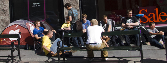 Onsdag aften satte de første kunder sig i kø foran Telias butik på Amagertorv i København. Det er i netop den butik, at landets allerførste iPhones blev solgt. Butikken åbnede for salget til midnat og inden da havde en DJ underholdt den ventende folkemængde siden klokken 21.
