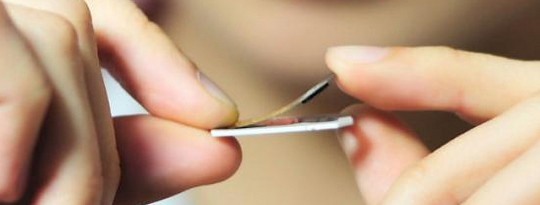 Herefter tager man sit almindelige sim-kort ud af telefonen, lægger det tynde ekstra-kort oven på og placerer hele herligheden i telefonen igen.