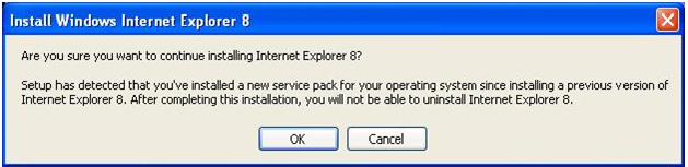Microsoft advarer på sin IE-blog de brugere, der har installeret XP SP3 om, at man ikke vil kunne afinstallere den nye browser igen.