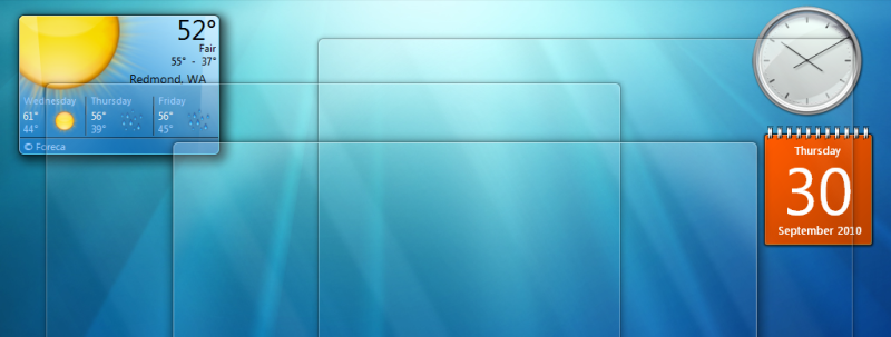 Smugkig-funktionen aktiveres ved at trække musemarkøren hen over det yderste hjørne af taskbaren. Så bliver alle de åbne vinduer gennemsigtige. Derved kan man også se gadgets.