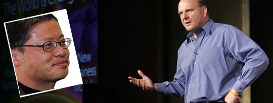 Microsofts topchef, Steve Ballmer, afviser Yahoo-stifter Jerry Yangs (indsat) tryglen om køb.
