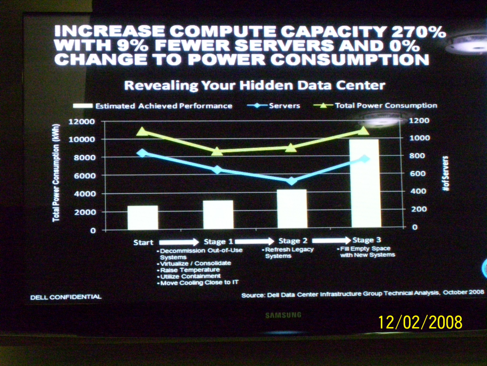 En anden udgift, der kan spares på, er elfremførslen i datacentret. De mange datacentre, der blev bygget inden dotcom-boblen brast, er nu 8-10 år gamle og lider af en forældet infrastruktur. For den slags datacentre anbefaler Dell, at opgradere de elektriske installationer som er en del af datacentrets infrastruktur.