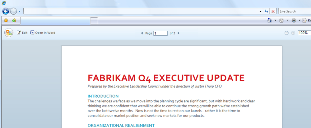 "Microsoft har givet en udvalgt gruppe tidlig adgang en en alfa-version af 'Office server teknologier'. Men Microsoft afslører ikke information omkring tiden for en beta-version på nuværende tidspunkt," udtaler en Microsoft-talsperson til internetnews.com.