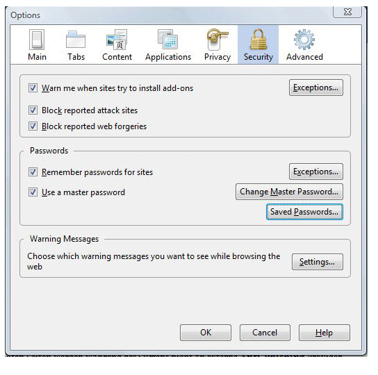 Firefox tillader, at lokalt gemte passwords kan blive beskyttet af et separat master-kodeord, og den fortæller dig også, hvor stærkt dit master-kodeord er.