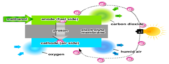 Direkte-metanol-brændselsceller producerer elektricitet fra en kemisk reaktion mellem metanol, vand og luft. De eneste biprodukter er en lille mængde vanddamp og kuldioxid, så disse brændselsceller ses ofte som værende mere miljøvenlige energikilder end traditionelle batterier.