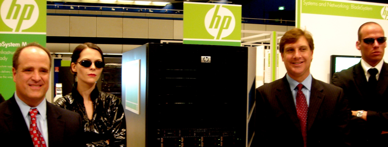 På HP's pressemøde lancerede selskabet det nye produkt med et lysshow, der kunne give epilepsianfald, og topchefer klædt i tøj, der skulle henvise til den 10 år gamle film "Matrix", der deler navn med HP's nye produkt.