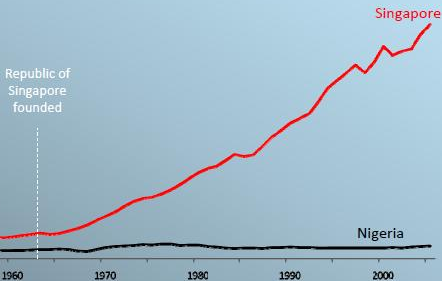 "Singapore importerer alt, og alligevel steg gennemsnitsindkomsten fra 600 dollars, siden de blev selvstændige, til 30.000 dollars i 2008. Det er samme niveau som USA og Schweiz. De er gået fra at være et tredjeverdens land til at være en moderne nation på en enkelt generation. Det er sket gennem god regeringsledelse og en veluddannet befolkning."