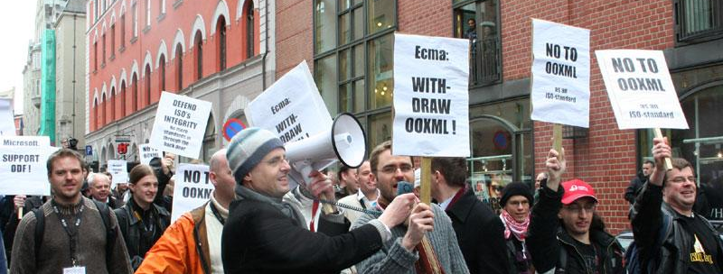 I Norge har der tidligere været demonstration imod OOXML-standarden. I dag har konkurrencestyrelsen anbefalet både OOXML og ODF til det offentlige Danmark. (Foto: computerworld norge)