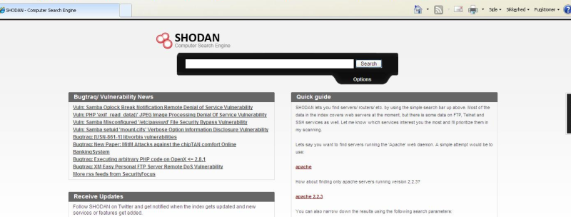 Det er ligeledes muligt, at få information om data, der er placeret på dårligt sikrede FTP-, SSH- eller Telnet-servere.
