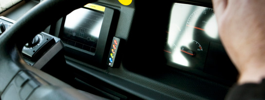 "Pludselige opbremsninger, kraftig acceleration og hårde sving giver uøkonomisk kørsel, og her får chaufføren direkte besked fra en lysindikator, der er placeret i bussen eller i lastbilen, som fortæller, at chaufføren nu kører uøkonomisk og uhensigtsmæssigt," siger Leif Søndergaard, markedschef i Falck.