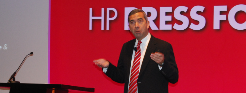 Badet i røg og projektørlys kunne vicedirektøren i HP's softwarebutik, danske Steen Lomholt-Thomsen, fortælle både presse og over 3.000 fremmødte HP-partnere, at vi lever i en tid med et usikkert økonomisk klima, og at HP kan hjælpe os igennem stormen. Ved hjælp af software.