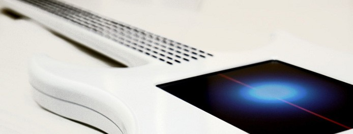 Guitaren har ingen strenge, men er forsynet med trykfølsomme punkter på gribebrættet og en trykfølsom skærm, der bruges til anslag.
