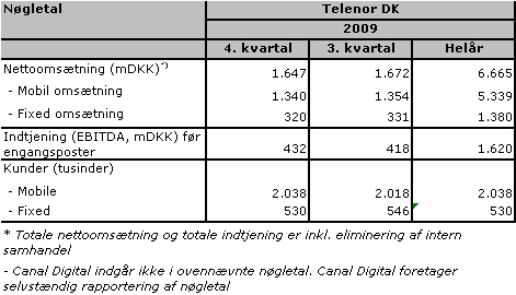 Telenor havde ved udgangen af 2009 lidt over to millioner mobilkunder, mens der var 530.000 kunder i fastnetforretningen.