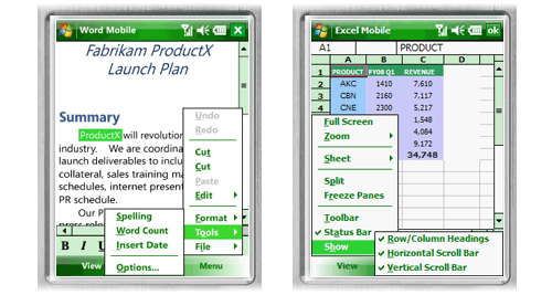 Microsoft Office Mobile indeholder tilpassede versioner af Word, PowerPoint, Excel og OneNote. Det betyder, at du præcis som på computeren kan læse/se, oprette og redigere dokumenter.