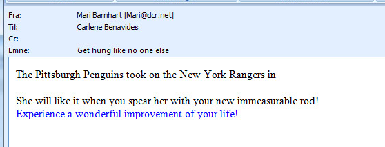 Når man inden for 10 minutter får en e-mail med et slagtilbud på piller, der kan øge dimensionen på ens genitale kønskarakter, efterfulgt af et tilbud på billig Viagra, kan man som mand blive bekymret og tænke: