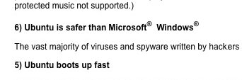 Her kunne man blandt andet læse, at "Ubuntu er mere sikkert end Microsoft Windows" efterfulgt af en information om, at "langt størstedelen af de vira og den spyware, der udvikles af hackere, ikke kan angribe Linux-systemer."