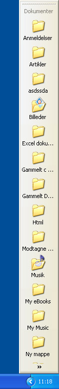 Tryk på mappen med venstre museknap og træk den til enten venstre eller højre side af skærmen og slip den. Windows vil nu automatisk oprette en værktøjslinje med indholdet af mappen.