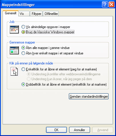 Inden du roder med indstillingerne, kan det være en god idé at etablere et gendannelsespunkt, så du kan vende tilbage til en konfiguration, der fungerer, hvis uheldet er ude. Gendannelsespunktet etableres ved at gå til Start, Programmer, Tilbehør, Systemværktøjer og trykke på Systemgendannelse.