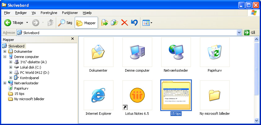 Du kan give dine mapper billeder, så det bliver nemmere at kende forskel på mapperne. Højreklik på mappen og vælg Egenskaber. Vælg fanebladet Tilpas og tryk på Vælg et billede. Billedet vil nu blive vist i de mapper, hvor der bruges miniature visning.