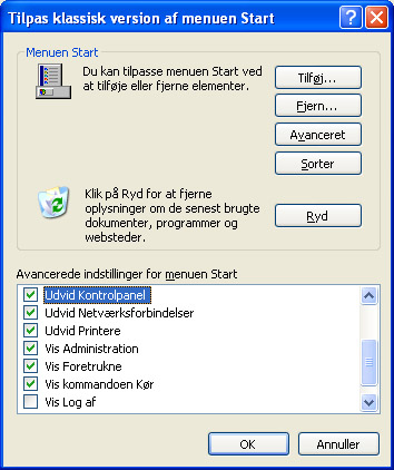 Vælg fanebladet Menuen Start. Vælg Klassisk version af menuen Start og tryk på Tilpas. Under punktet Avancerede Indstillinger for menuen Start kan du finde alle de menupunkter, som kan udvides. Derefter er det blot at sætte flueben i de punkter, som du ønsker udvidet.