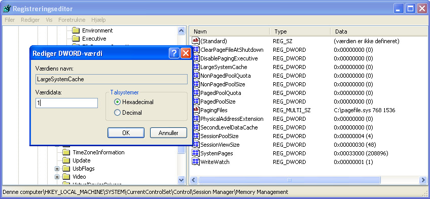 HKEY_LOCAL_MACHINE\SYSTEM\CurrentControlSet\Control\Session Manager\Memory Management\LargeSystemCache