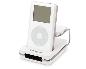Et af disse produkter er en dockingstation fra firmaet Kensington, der forenkler tilslutningen af iPod’en til stereoanlægget.