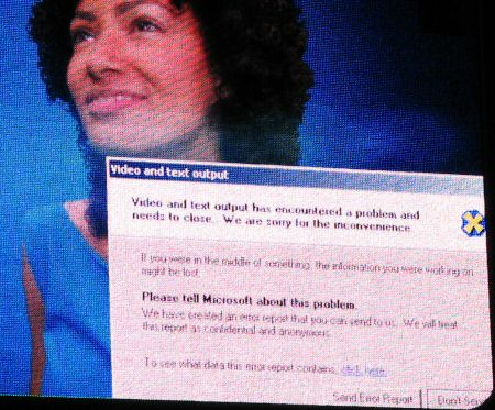 Et afspillet videoklip var fuldkommen frosset, mens en fejlmeddelelse dukkede op i gigantstørrelse.