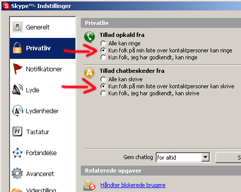Skype-brugere har dog mulighed for at blokere for unødvendige henvendelser, da der i programmet er indstillinger, som kan beskytte ens privatliv.
