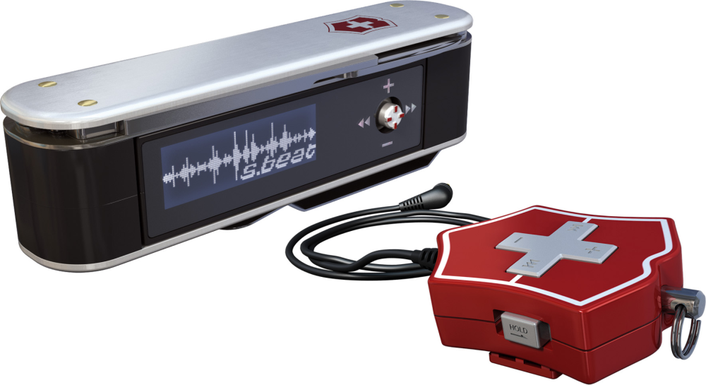 S.beat hedder afspilleren, der fås i forskellige versioner med en, to eller fire gigabyte hukommelse. Musikken kan gemmes i formaterne MP3, WMA eller WAV. Det er også mast FM-radio og diktafon ind i schweizerkniven.