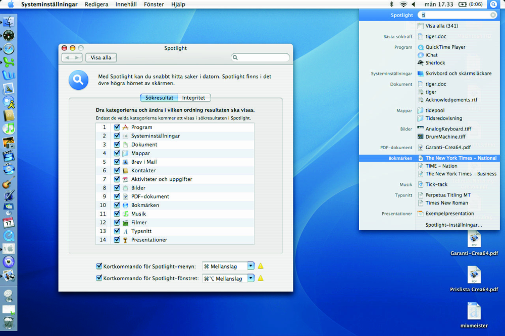 Tiger eller Mac OS X 10.4 indeholder mange nyheder. I nærheden af 200, hævder Apple, men så antager vi, at de har regnet de mindste detaljer med. De største og mest iøjnefaldende nyheder hedder Dashboard og Spotlight.