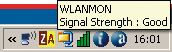 Når netværkskortet er installeret i Windows, vil der dukke et lille ikon op i meddelelsesområdet i nederste højre hjørne. Hvis ikonet lyser grønt, betyder det, at der er forbindelse til et trådløst netværk i nærheden.
