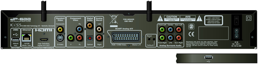De seks kanalers surroundsound kan bruges ved tilslutning af surroundforstærker, hvis forstærkeren ikke har digital lydindgang.