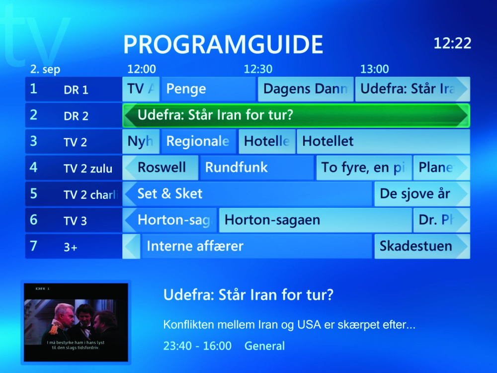 Det er slut med at fedte rundt på de bagerste sider i avisen eller i ugebladet for at finde ud af, hvad der kommer i fjernsynet. I stedet trykker man bare på en knap på fjernbetjeningen, så kommer dagens tv tilbud op på skærmen.