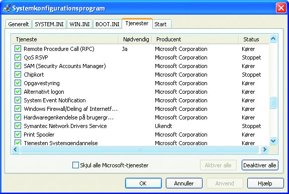 Men lad os nu se nærmere på en række tjenster, hvis indstillinger med fordel kan ændres. Bemærk, at nogle af tjenesterne kun forekommer i Windows XP Professional Edition.