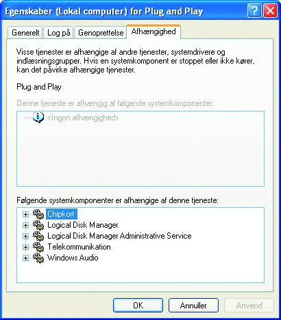 Inden man deaktiverer en tjeneste, bør man kontrollere, om andre tjenester er afhængig af den. Skulle man eksempelvis få deaktiveret tjenesten Plug and Play (gør det ikke!), ophører en hel række andre tjenester med at fungere.