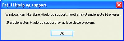 Hjælp og Support – Hvis denne tjeneste deaktiveres, er Hjælp og support centeret ikke længere tilgængeligt på pc’en. Det er det vindue, man får frem, hvis man vælger Hjælp og support fra Start menuen.