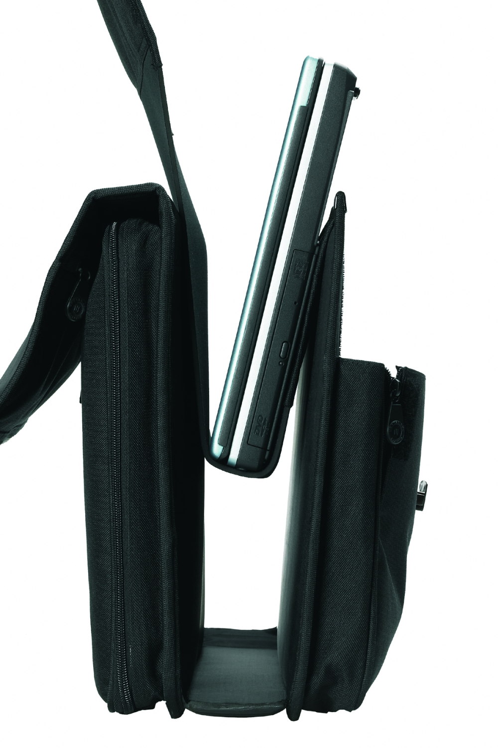 Der findes tre slags tasker til bærbare computere. Der er dem, man lægger computeren vandret ned i ligesom tøj i en feriekuffert. De fylder og er besværlige. Så er der dem, man dropper computeren lodret ned i ligesom ringbindet i en forretningsmappe.