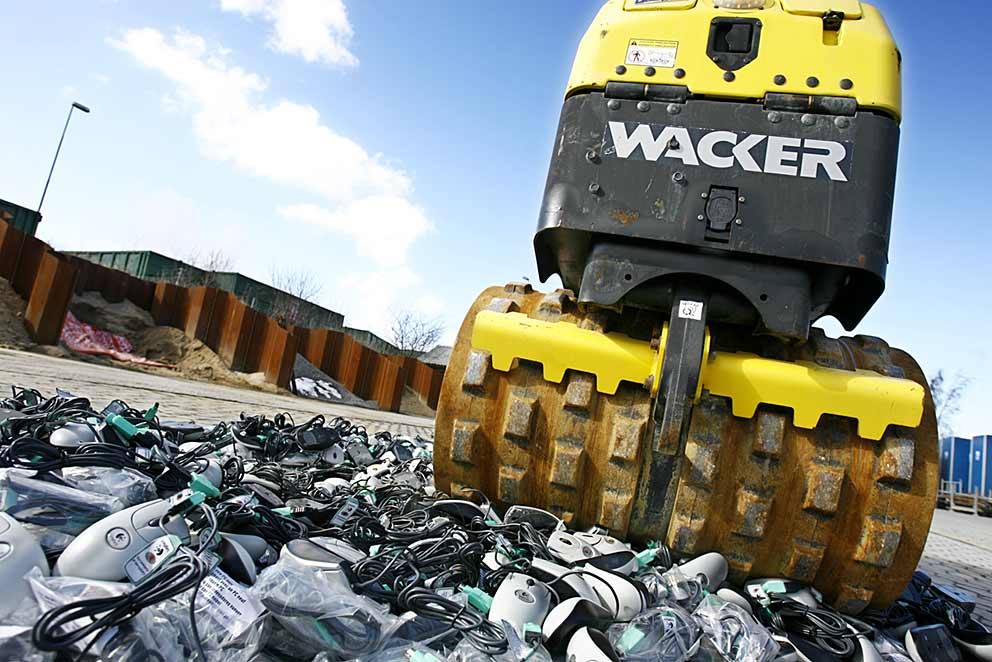 10.000 beslaglagte mus mødte en hård skæbne, da Logitech satte en tonstung vejtromle til at knuse dem.